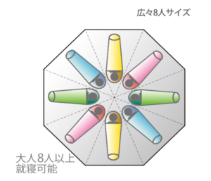 このような放射線状に寝ると足も充分に伸ばせて寝ることが出来ます。